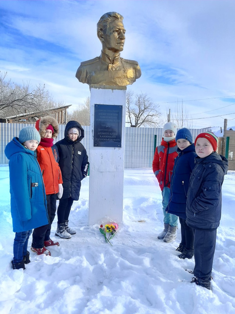 Возложение цветов у бюста Героя Советского союза Ахметгаллина Хакимьяна Рахимьяновича 5 класс.